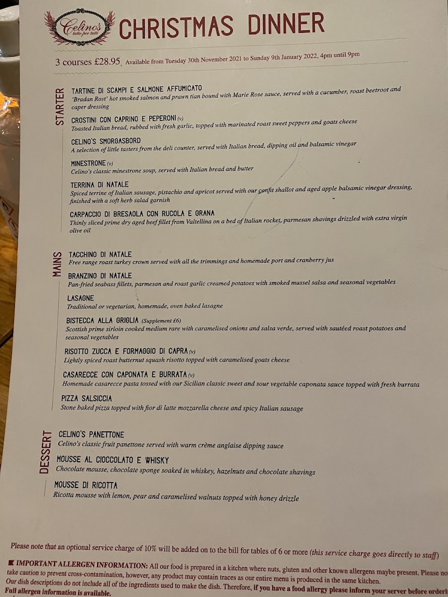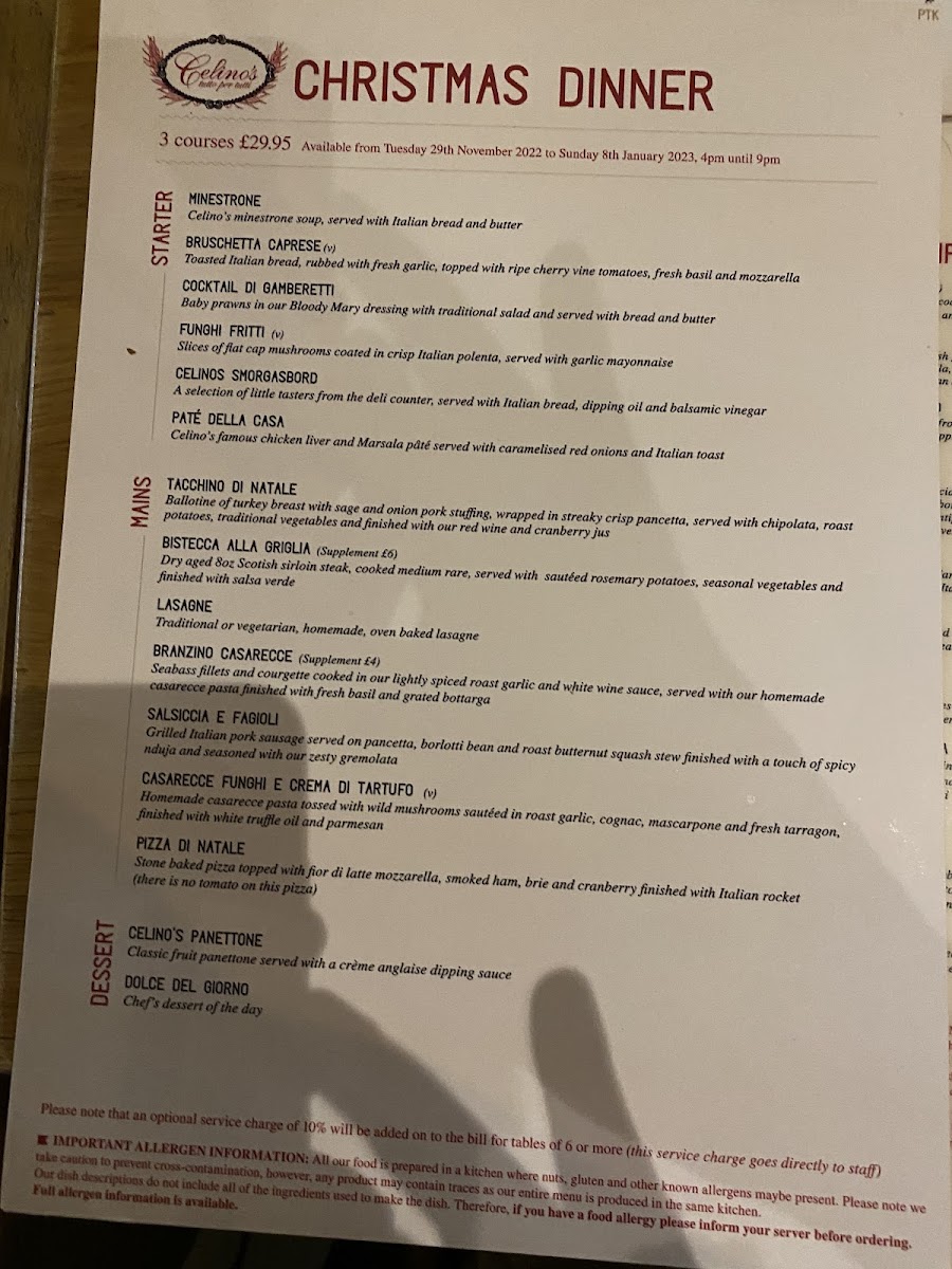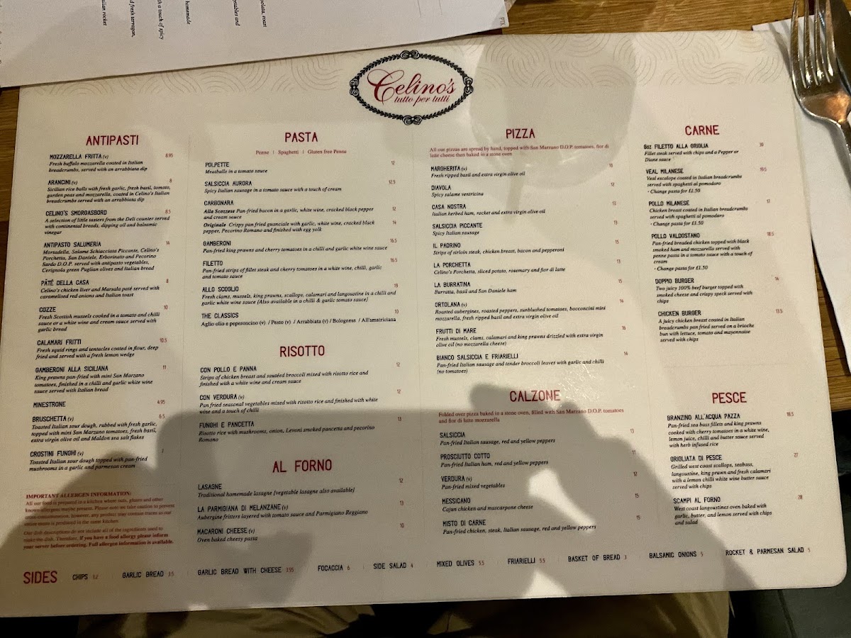 Celino's Menu