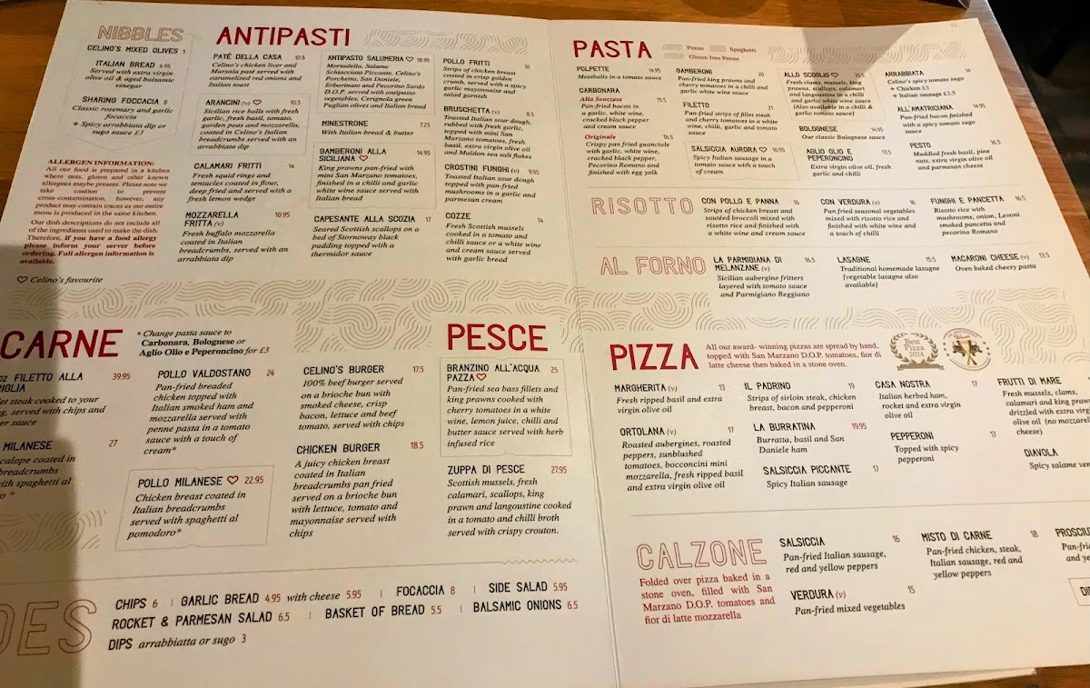 Welcome to Celino's, a vibrant eatery nestled in Glasgow offering a delightful culinary experience. Known for its warm atmosphere and attentive service, Celino's boasts an impressive menu that caters to diverse palates. Start your day with their tempting breakfasts, featuring dishes like the classic Scottish Breakfast or indulgent French Toast for kids. For lunch and dinner, explore a variety of Antipasti options, such as the crispy Pollo Fritti or succulent Gamberoni alla Siciliana, both bursting with flavor. Diners rave about the restaurant's fresh ingredients and generous portions, making it a family favorite. From delectable pizzas to velvety desserts like strawberry cheesecake, every dish is crafted with love. With its welcoming vibe and delicious offerings, Celino's is indeed a must-visit spot for anyone in Glasgow.